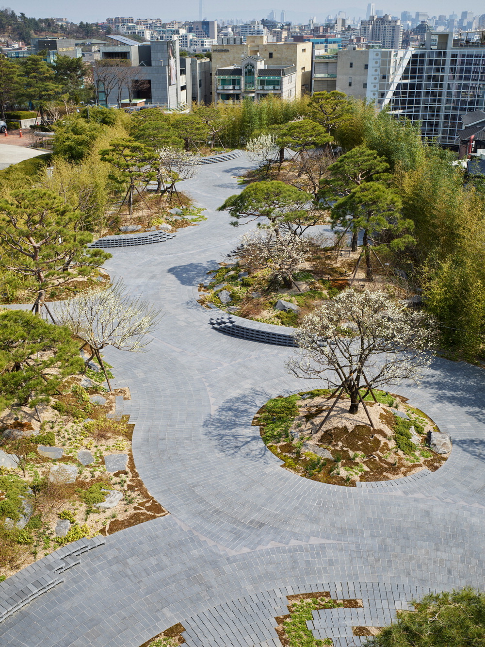 또 하나는 500평 데크 전체가 충남 보령에서 채석한 보령석을 가지런히 놓은 10개의 작은 원형으로 구성됐다는 점이다. 이 야외 정원은 미술관 개관 시간 동안 누구에게나 무료로 개방된다.