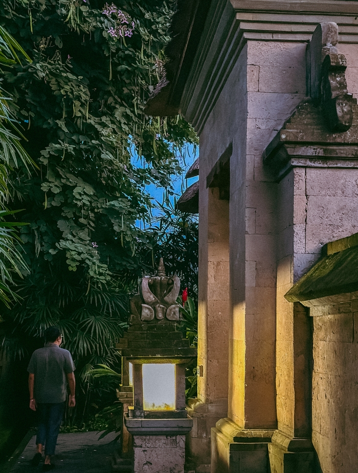 아만다리 외관 / 사진=권효정 기자 덴파사르 응우라라이 국제공항에서 차로 1시간~1시간 30분 소요된다. 우붓 중심가와는 차로 15분 거리인 케데와탄 마을(Kedewatan)에 위치한다. 그리 가깝지도 멀지도 않은 절묘한 거리는 고요함과 편리함의 균형을 만들어낸다. 덩굴식물로 뒤덮인 입구는 오래된 사원을 연상케 한다.