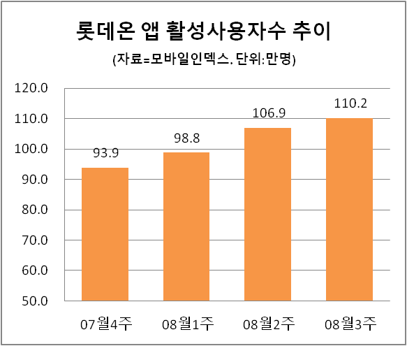 롯데온 앱 활성사용자수 추이 롯데온의 최근 분위기는 연초와는 사뭇 달라졌다. 올 초까지만 해도 롯데그룹 내부에서는 롯데온을 중심으로 한 유통 부문 온라인 통합 운영 문제를 놓고 여러 의견이 오갔다. 일각에서는 주요 유통 사업군별로 개별적으로 온라인 전략을 세우는 방안까지 거론됐던 것으로 전해졌다. 하지만 최근 움직임을 보면 롯데온이 상품 및 배송 경쟁력을 강화하면서 그룹 통합 플랫폼으로서 승부를 보겠다는 방향성을 유지키로 한 것으로 파악된다.