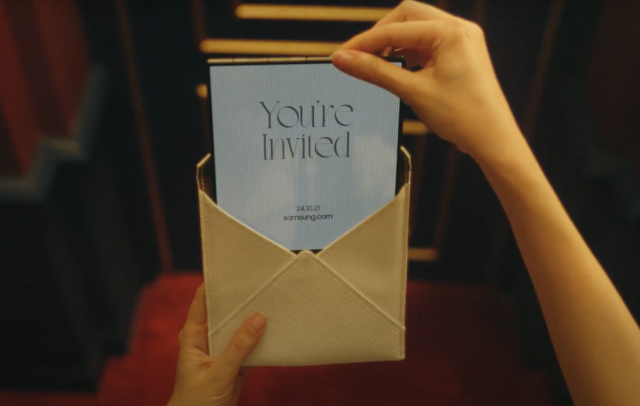 [사진출처=삼성전자 뉴스룸 캡처] 12초 분량의 짧은 영상에는 한 개의 편지 봉투가 등장한다. 문틈으로 넘어온 봉투를 열면 갤럭시 신제품으로 추정되는 기기가 나오고 ‘10월 21일’이 적힌 문구가 클로즈업된다.
