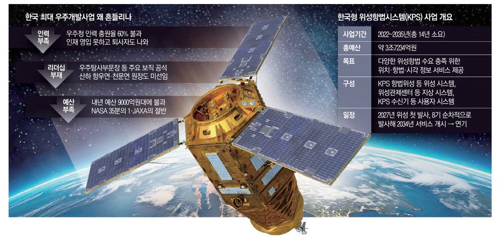 약 4조원이 투입되는 대형사업임에도 사업 전반을 관리해야 할 우주항공청 담당자조차 공석이다. 과학기술정보통신부에서 우주항공청으로 한국형 위성항법시스템(KPS) 업무가 이관된 기간까지 감안하면 1년 가까이 공백 사태가 벌어진 셈이다.