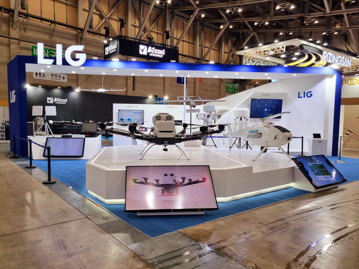 LIG넥스원 홍보부스 대한항공과 LIG넥스원은 이달 26~28일 사흘간 부산 벡스코에서 열리는 ‘DSK(드론쇼코리아) 2025’에 참가한다고 26일 밝혔다.