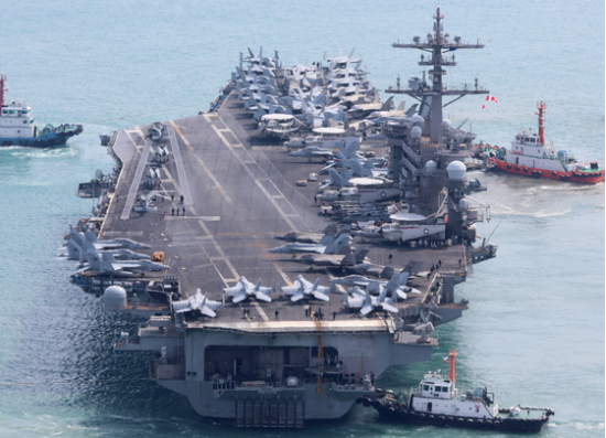 지난 3월 중 한미일 연합훈련 및 한미 연합 ‘자유의 방패’(프리덤실드·FS)가 예정된 가운데 같은 달 7일 부산 해군작전기지에 미 해군 제1항모강습단 소속 핵 추진 항공모함 칼빈슨함(CVN-70)이 출항하는 모습.(사진=연합뉴스) 중국군 정보조직에 한미 연합훈련 관련 군사기밀을 유출한 혐의로 기소된 현역 병사 A 병장이 중국 인민해방군 출신 외조부를 둔 인물인 것으로 확인됐다.