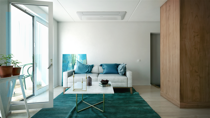 단일 방향으로 공기를 내보내는 1웨이 카세트형 무풍에어컨은 높이 135㎜의 콤팩트한 디자인으로 설치가 용이하고 공간 효율성도 높다.