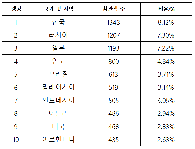 이번 전시회를 방문한 바이어 및 참관객을 살펴보면 중국 본토, 대만, 홍콩, 마카오를 포함한 144개국 및 지역에서 방문한 것을 볼 수 있습니다.