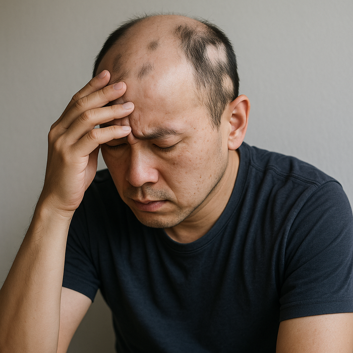 원형 탈모로 고민하는 남성 이미지. 사진=챗GPT 인도 제약사 선파마(Sun Pharmaceutical Industries)가 개발한 중증 원형 탈모증 치료제 ‘레크셀비’가 미국 시장에서 본격적인 판매에 돌입했다.