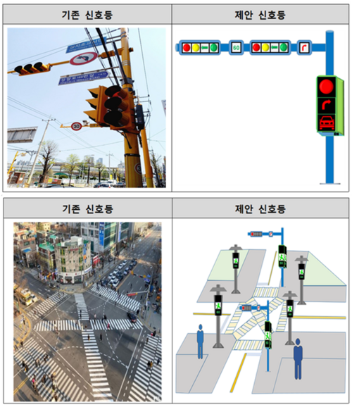 - 신호등과 기둥을 하나로 합친 4면 디자인으로 사각지대 해소