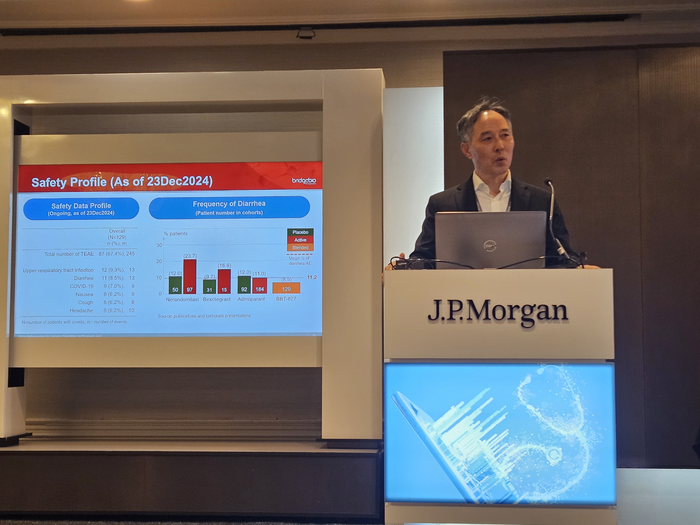 JP모건은 업계에서 손꼽히는 주요 업체만을 공식 초청하는데,행사의 핵심 무대인 메인 트랙에서 발표하는 것은 그중에서도 극소수다. BMS,로슈,일라이 릴리 등 글로벌 거대 제약사들이 대부분이다. 한국에서는 그동안 삼성바이오로직스와 셀트리온이 꾸준히 이름을 올렸지만 신약 하나로 국내 바이오 회사가 메인 트랙 발표를 배정받은 것은 브릿지바이오테라퓨틱스가 처음이다.
