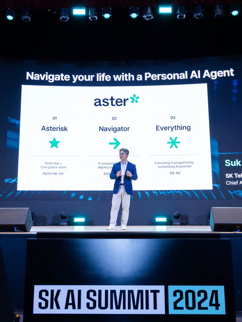 정석근 SK텔레콤 부사장이 5일 서울 강남구 코엑스에서 열린 'SK AI 서밋'에서 AI 에이전트 서비스 '에스터'를 공개했다. SK텔레콤은 에스터가 챗봇처럼 단순히 질의·응답하는 차원을 넘어 사람 대신 목표와 계획을 세우고 수행하는 AI 비서라고 설명했다. 에스터는 올해 베타 서비스를 거쳐 내년 북미 시장에 출시될 예정이다. SK텔레콤
