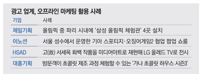 광고 업계가 진행하는 오프라인 활동은 '체험 마케팅'에 집중한다. 이를 위해 글로벌 전시 및 행사에 참여한 고객사의 브랜드가 노출될 수 있는 전략을 기획한다. 또 팝업스토어 운영을 통해 일반 소비자가 접근할 수 있게끔 한다.
