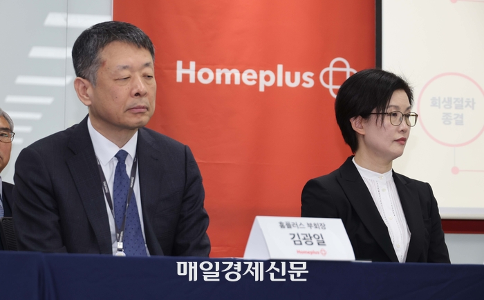 홈플러스는 14일 김광일(MBK파트너스 부회장)·조주연(사장) 공동대표를 비롯한 경영진이 참석한 가운데 서울 강서구 본사에서 기자회견을 열었다. 경영진은 “3400억원 규모 협력사 납품대금·정산금 등 상거래 채권 상환을 마쳤다”며 “나머지 금액 변제도 전혀 문제없다”고 설명했다.
