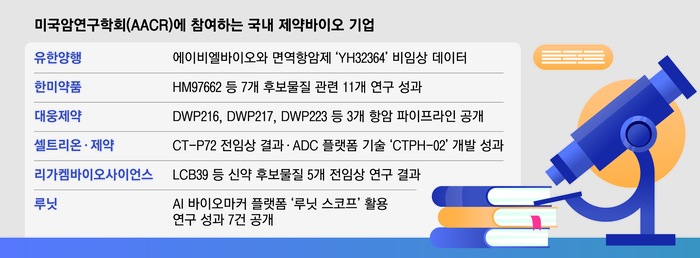 22일 업계에 따르면 25~30일(현지시간) 미국 시카고에서 열리는 AACR에서 유한양행,한미약품,대웅제약,셀트리온,리가켐바이오사이언스,루닛,온코닉테라퓨틱스 등이 참가해 항암 신약 관련 연구 성과를 발표할 예정이다. 기업들은 항암 시장의 주류로 부상한 항체·약물접합체(ADC)와 암세포 공격력을 높이는 다중항체 기반 항암제 후보물질 등의 공개를 예고했다.