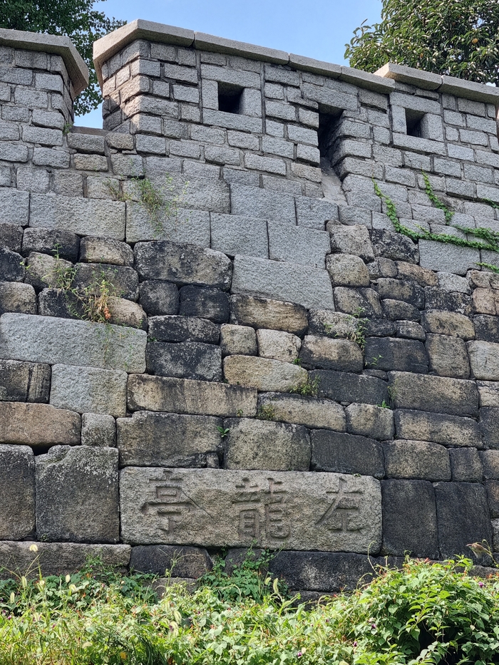 좌룡청 활터 각석. 활터는 사라졌고 좌룡정 각자만 낙산 성벽에 남았다. [배한철기자] “광화문의 선단석(縇端石·아치 밑을 받치는 돌)을 영풍정(映楓亭)에서 떼어왔다. 훈련도감(訓鍊都監·한성부 수비군)의 자원 부역군 725명이 끌고 왔다.”