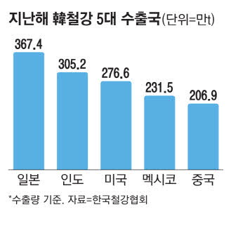 인도와 EU는 한국 철강의 주력 수출국이다. 한국철강협회에 따르면 지난해 EU는 총 381만4641t의 한국산 철강재를 수입해 아세안 다음으로 수출 규모가 컸다. 인도 역시 단일 국가를 기준으로 한국산 철강 수입국 2위다. 이 두 나라를 향하는 한국산 철강재 수출 물량은 미국향(276만6000t)보다 많다.