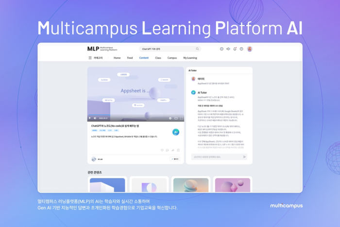 멀티캠퍼스 HRD R&D센터장 장태원 상무는 “MLP AI가 글로벌 무대에서 기술력과 혁신성을 인정받게 되어 매우 뜻 깊다”며,“특히 생성형 AI 활용에 익숙한 MZ세대 구성원이 많은 조직일수록 MLP AI를 통해 보다 높은 교육 효과를 기대할 수 있을 것”이라고 밝혔다.
