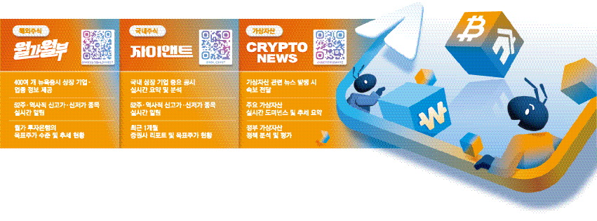 매일경제는 텔레그램 채널 '매경 월가월부'를 론칭한 데 이어 AI 기반 실시간 미국 등 해외 투자 정보를 언론사 최초로 제공해왔다. 이달부터는 '매경 자이앤트' '매경 크립토뉴스' 채널까지 추가해 3대 채널 성장에 본격 드라이브를 건다. 이들 텔레그램 구독은 모두 무료다.