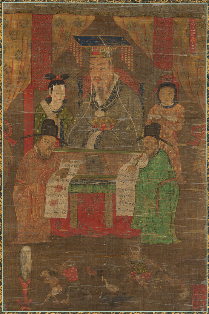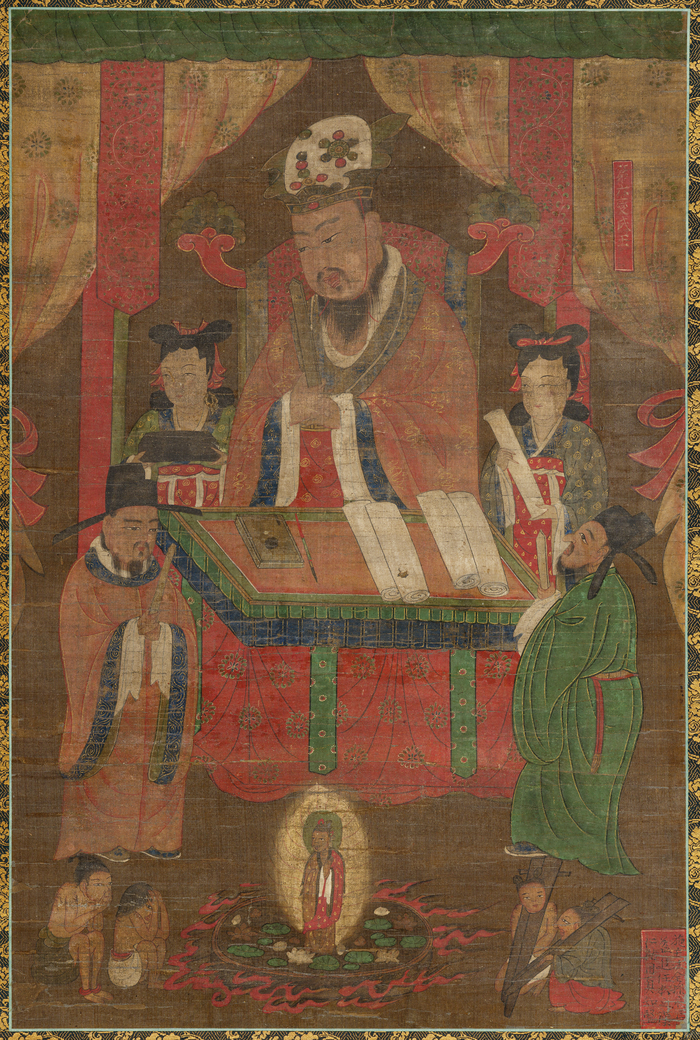 시왕 중 대표적인 지옥왕인 염라왕이 주관하는 지옥 묘사한 장면. 염라왕이 쓴 면류관에 북두칠성이 그려져 있다.