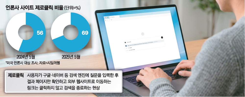 특히 웹 분석 기관 시밀러웹이 미국 언론사를 대상으로 진행한 조사에 따르면 구글에서 유입되는 언론사 트래픽은 2024년 중반 23억회에서 1년 만에 17억회로 감소했고,같은 해 5월 56%였던 제로 클릭 비율은 2025년 5월 69%로 증가했다.